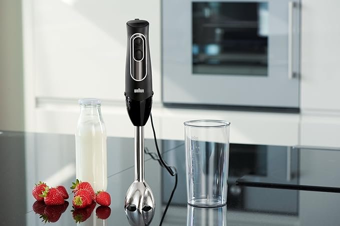 The Braun MQ505 Multiquick Hand Blender combines power and precision with its 350-watt motor and dual-speed control, making blending, pureeing, and whisking effortless. Featuring SplashControl technology for mess-free use and an ergonomic SoftGrip handle for comfort, it ensures smooth performance every time. A must-have for quick smoothies, soups, and sauces—check it out today and bring professional blending convenience to your kitchen.