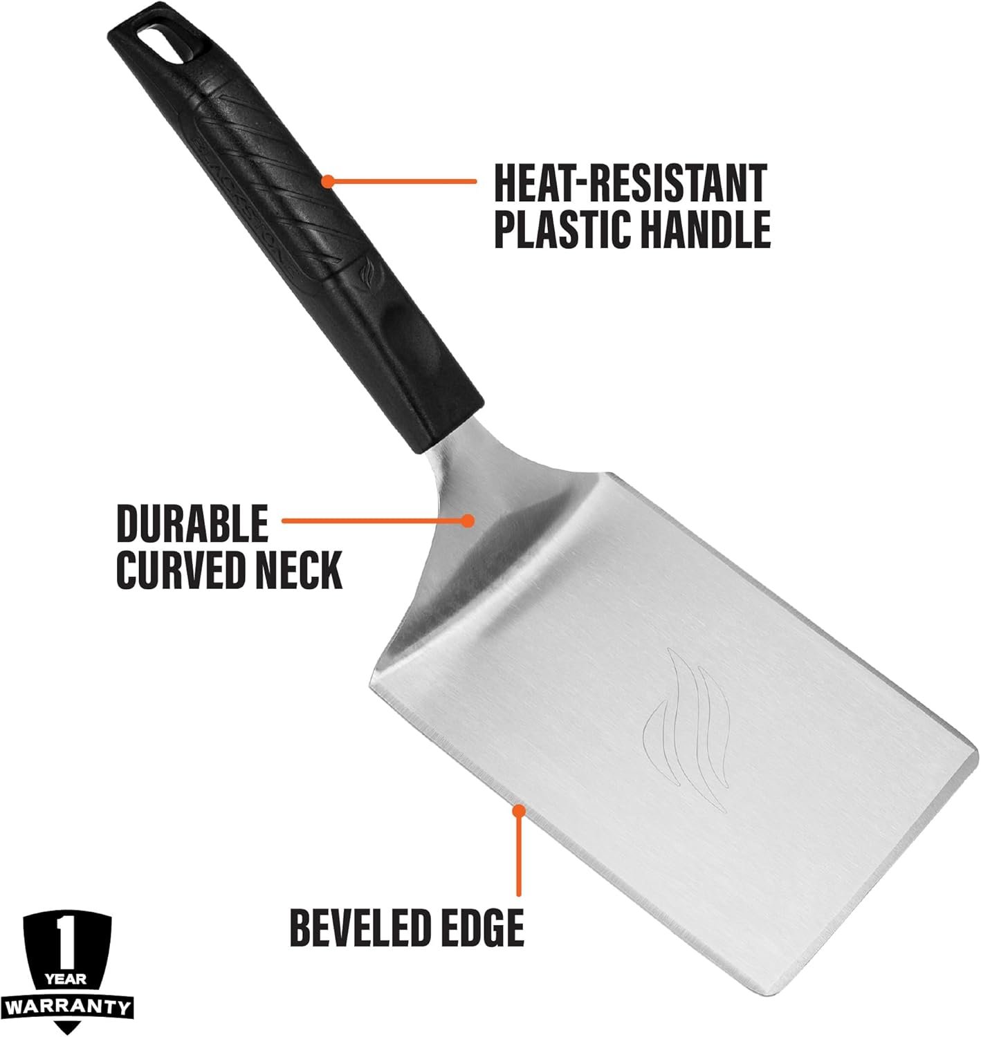 This product immediately stands out for its extra-wide, heavy duty stainless steel build and comfortable, ergonomic handle. Whether you’re a backyard griller or a weekend camp chef, BLACKSTONE’s spatula excels at versatile, real-world tasks.