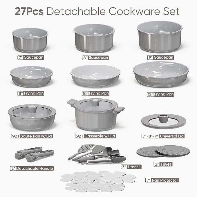 The CAROTE Nonstick Cookware Set combines durability, functionality, and space-saving design for modern kitchens. Featuring removable handles, diamond-infused ceramic nonstick coating, and an induction-compatible base, it delivers reliable performance and easy cleanup. Oven-safe up to 500 °F and dishwasher-friendly, this set is perfect for everyday cooking convenience. Upgrade your cookware collection today and explore more details with just one click.