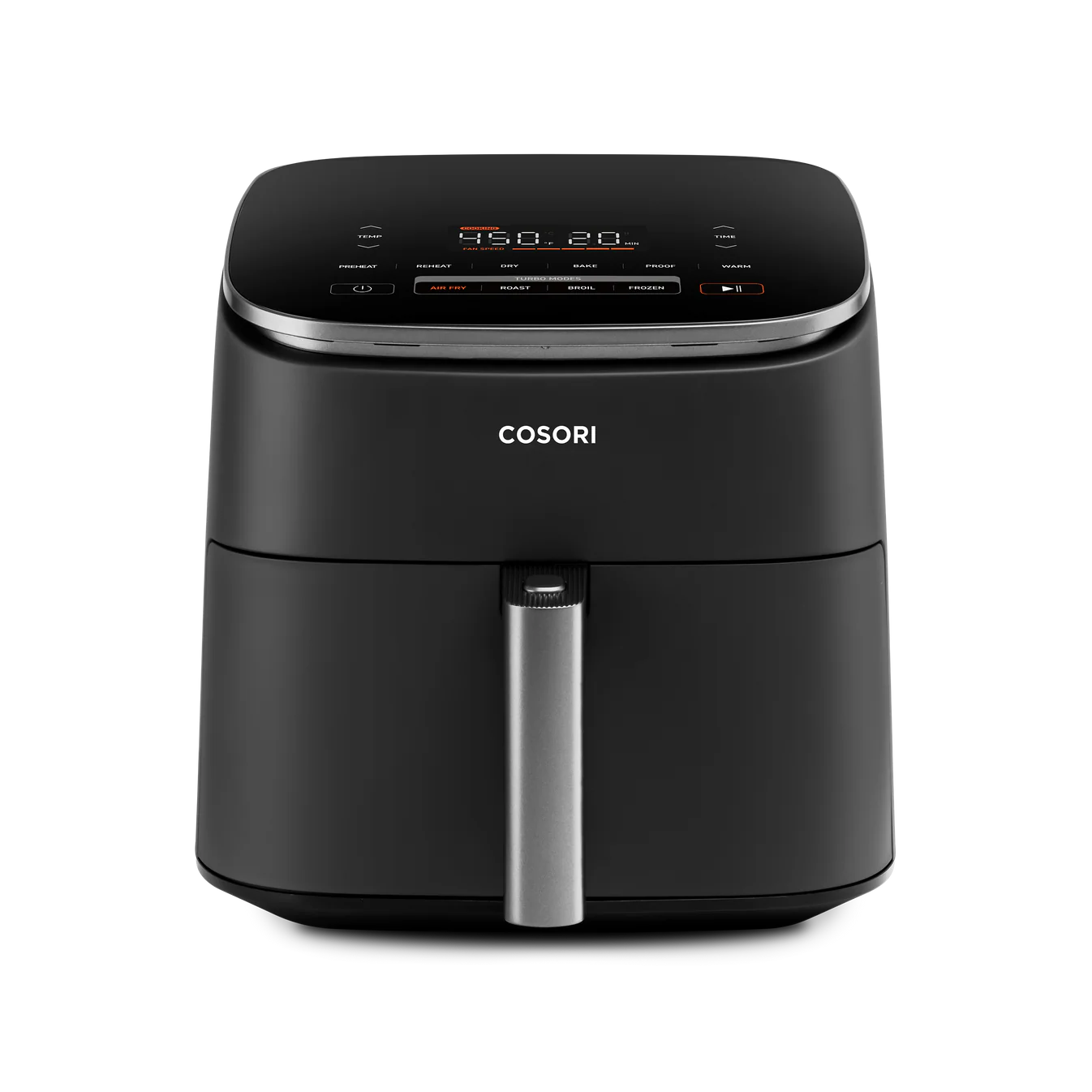 The Cosori TurboBlaze 6-Qt 9-in-1 Air Fryer features TurboBlaze technology with a high-speed 3600 rpm fan for fast, even air circulation and crisp results. It offers a wide temperature range from 90 °F to 450 °F, along with nine cooking modes including air fry, roast, bake, broil, dehydrate, and more. Its premium ceramic-coated nonstick basket and crisper tray make cleanup easier. Opt for this model to enjoy healthier fried foods with precise control.