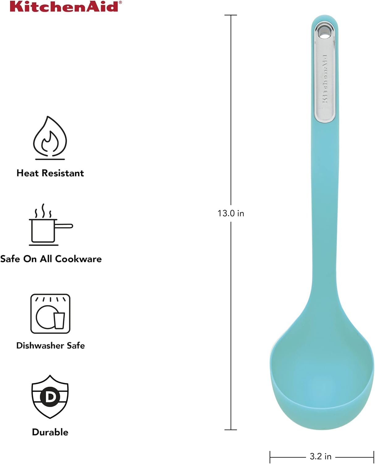 This tool features a striking Aqua Sky finish and a thoughtfully crafted head, making it a reliable companion when serving soup or sauces. With materials engineered for safe use on nonstick cookware, you’ll avoid scratches and maintain the integrity of your pots and pans.