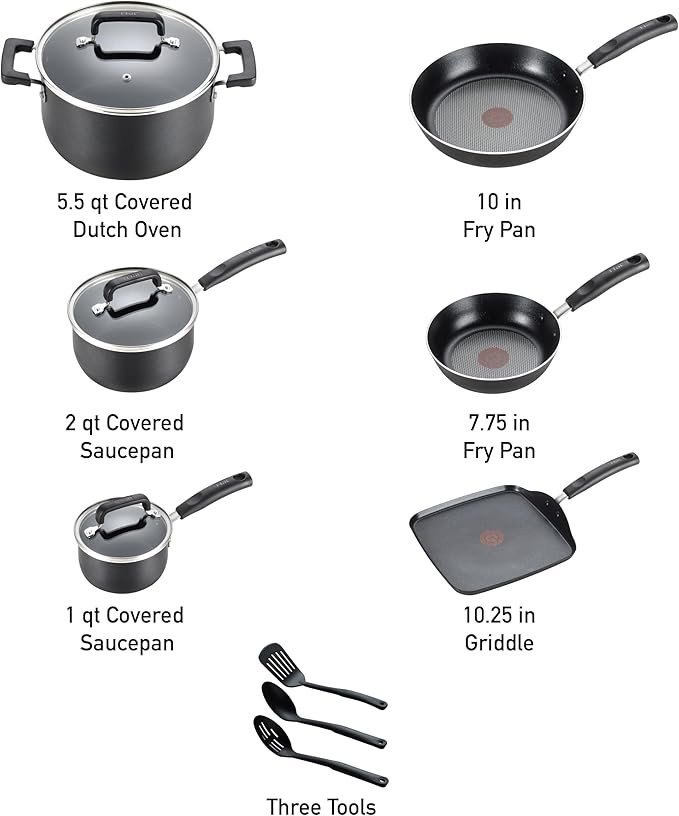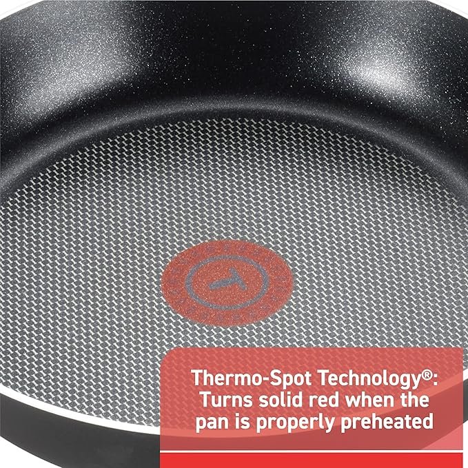 The T-fal Signature Nonstick Fry Pan combines practicality and ease with features like a Thermo-Spot heat indicator, durable titanium-reinforced nonstick interior, and oven-safe design (up to 350 °F). Its even-heat base prevents hot spots and ensures consistent cooking. Ideal for everyday use, it’s dishwasher safe and built for effortless cooking and cleanup.